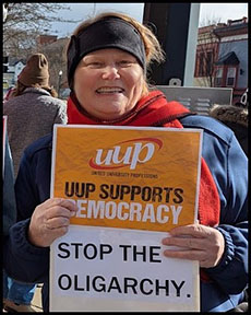 Third, to increase our power, it's time for UUP to redefine who we represent. For too long, our colleagues at the SUNY Research Foundation have, at times, undermined our work. Yet, they have also reached out to us at times to plead for union representation. The same is true for those who work in clinical practice plans or who earn the vast bulk of their income from them – but have no union protections there. It's time to take on an organizing campaign to bring them in. This will involve the commitment of resources, while also taking steps to restructure our union – including how we elect statewide officers. I look forward to working with you on these issues and on the organizing work that will make us bigger and stronger for the fights ahead.